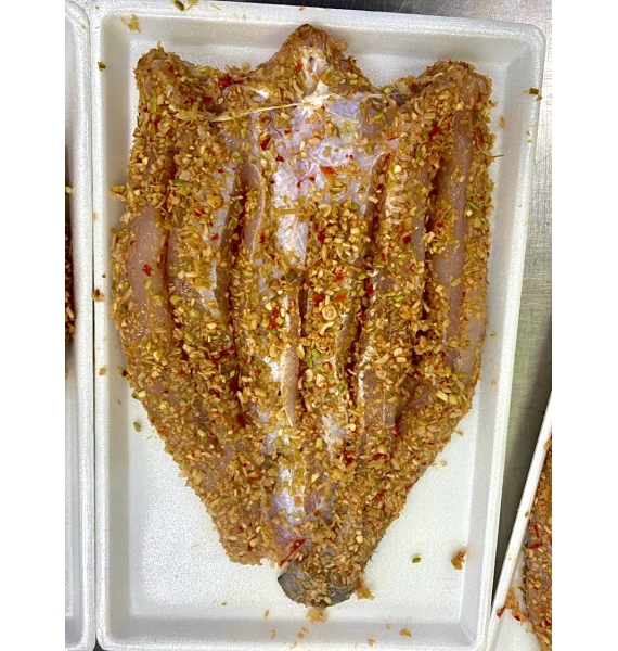 Nguồn gốc: Miền Tây Việt Nam Quy trình: nguyên con làm sạch, fillet, tẩm ướp theo công thức độc quyền của Công ty Đóng gói: 16oz x 40bags/T